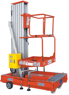 双立柱铝合金升降机是全新设计的新一代产品,整体采用高强度铝型材精制而成由于型材强度高,使升降台的偏转与摆动极小。采用双桅柱式结构,载重量大,平台面积大,稳定性极好,运转灵活,推行方便。它轻盈的外观,能在极小的空间内发挥最高的举升能力。该升降机广泛用于厂房、宾馆、大厦、商场、车站、机场、体育场等。可用作电力线路、照明电器、高架管道等安装维护,高空清洁等单人或双人工作的高空作业。
