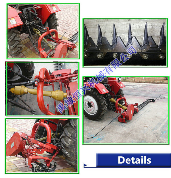 9G型后悬挂割草机用偏置式曲柄连杆机构驱动割刀进行割草作业。及适用于农、林、牧区小面积草场和山地丘陵草场,用以收割天然和种植牧草。该机具具有结构简单、操作方便、割刀切割有力、割茬低且整齐、使用可靠等特点。