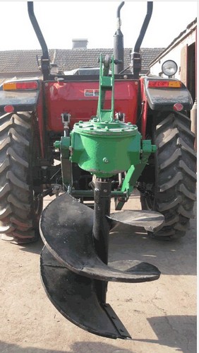 钻头切去中心部分土壤,进而钻头叶片下端的刀片切削土壤,配置减速机,连接螺旋式钻头,机架支撑,进行在地面钻坑作业。拖拉机带式植树机能让人们从繁重的体力劳动解放出来,植树挖坑机广泛应用于植树造林,栽种果林、篱笆、及秋季给果树施肥等。