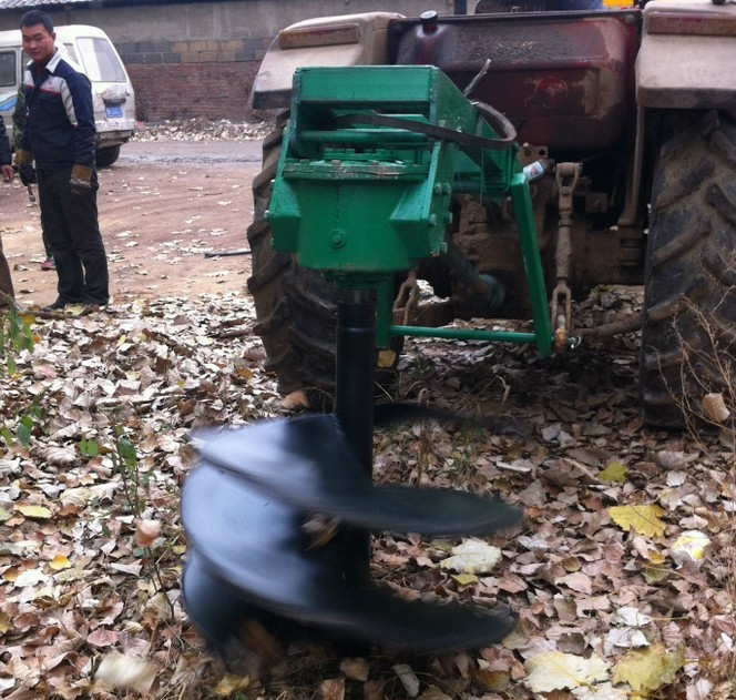 拖拉机挖坑机设计合理,结构紧凑,使用灵活,操作方便。和不同型号拖拉机配套,钻头切去中心部分土壤,进而钻头叶片下端的刀片切削土壤,动力强劲有力,外形美观,操作舒适,劳动强度低,适合各种地形,率高,便于携带及野外田地作业