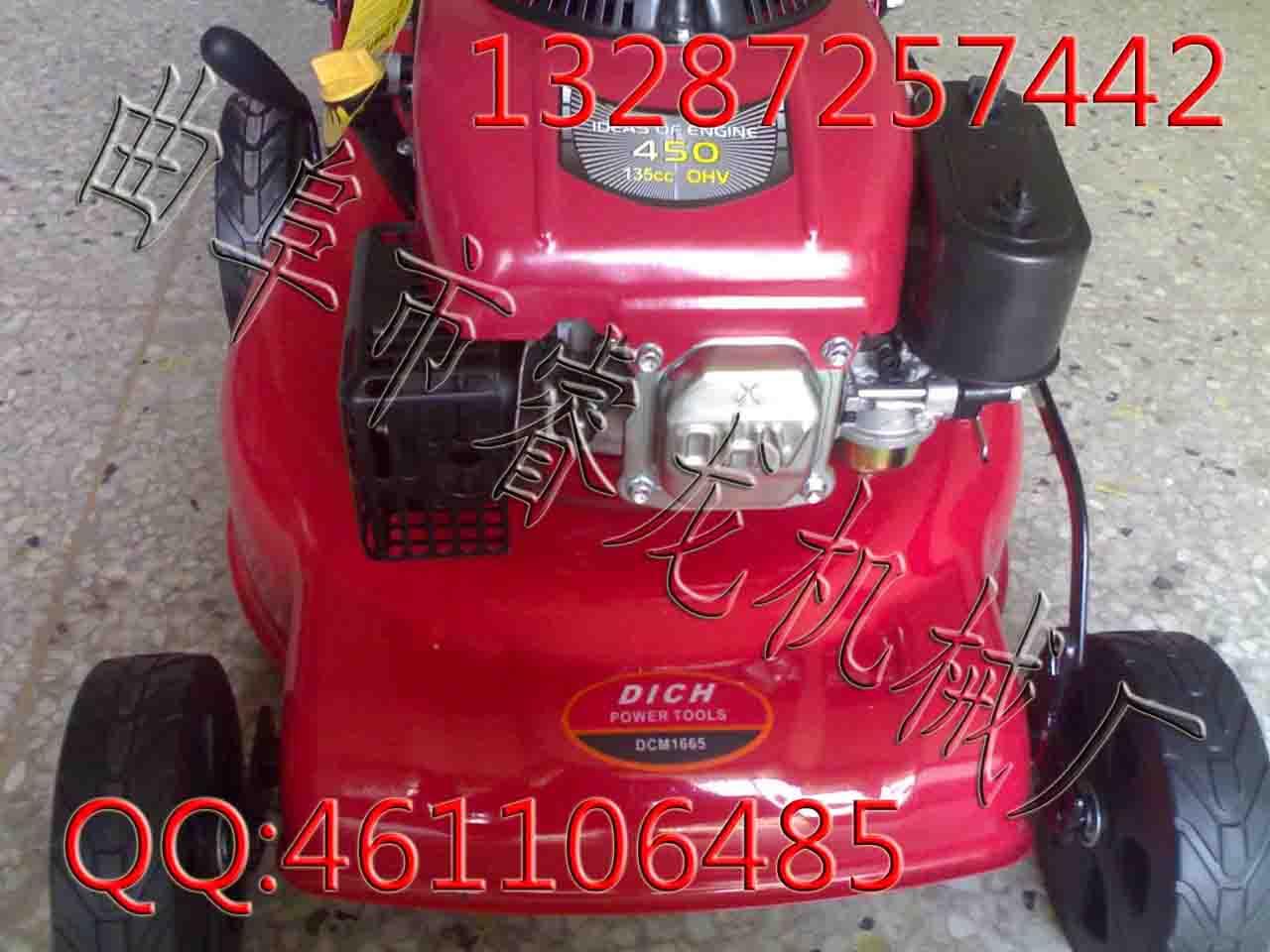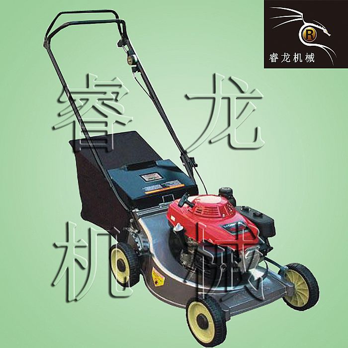19寸高档坚固的钢制底盘,11档剪草高度调节;不带刹车! 工作原理:刀盘装在行走轮上,刀盘上装有发动机,草坪机动力为四冲程汽油机,汽油、机油分开使用。汽油采用90#以上,