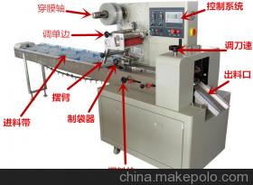 例如:纸巾枕式包装机,面包枕式包装机,果丹皮枕式包装机,酒精块枕式包装机,月饼枕式包装机,肥皂枕式包装机,蛋卷枕式包装机,香肠枕式包装机,棒棒糖枕式包装机,托盘枕式包装机,轴承枕式包装机,等有规则物体的包装。