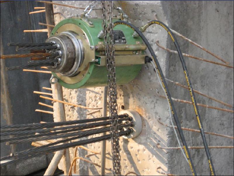 YCD-180张拉千斤顶和手动泵和高压胶管构成锚索张拉机具,张拉千斤顶内置工具锚,而且可以自动锚固和自动退锚,操作安全,工作效率高。