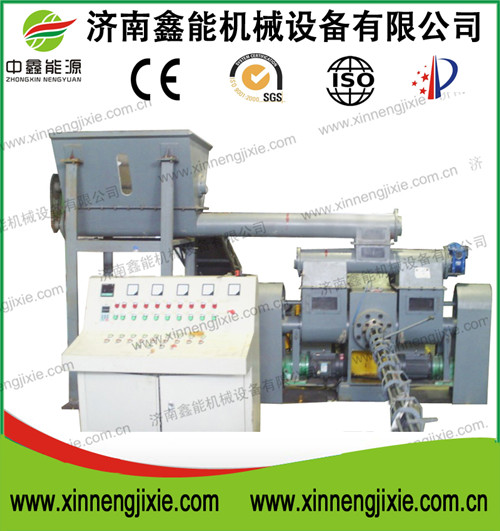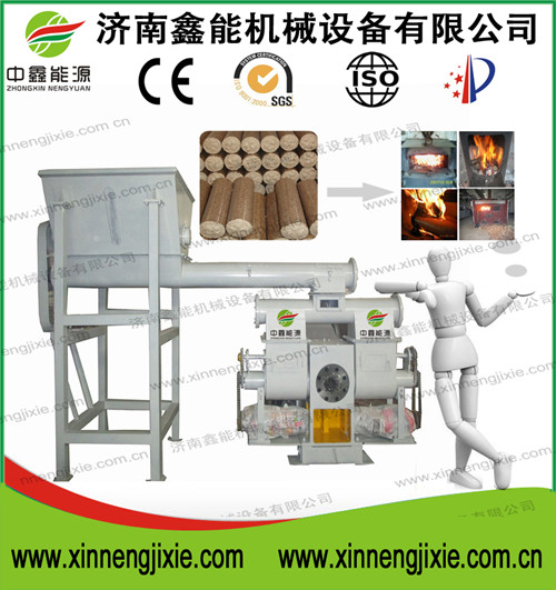 我公司设计的XNY-1000C玉米秸秆压块机,是将玉米秸秆等农作物秸秆森林采伐剩余物经除尘、压缩、定型等工序,压缩成燃料压块的一种固化成型设备。压缩成的燃料呈块状,体积小,密度大,便于储存和运输,使单位面积的燃烧值提高十几倍,产热性与抗炼性与中质煤接近。该设备采用螺旋预压,活塞冲压,二级压缩工艺,机油强制冷却,保证设备润滑,解决了普通玉米秸秆压块机对原料的含水量要求较高和成型模具磨损快的不足;该设备具有电能消耗低、生产效率高、机械运行寿命长、维修率低等特点。生物质燃料可替代煤、油等常规能源,广泛应用于工业生产、机关、企事业单位、城镇居民的供热采暖、居民炊事、高档壁炉以及烟农烤烟,也可作为生物质发电厂的发电原料。该型号设备已被列入国家农机推广目录,并已申报国家专利获得国家专利权,专利号:201020226432.1。