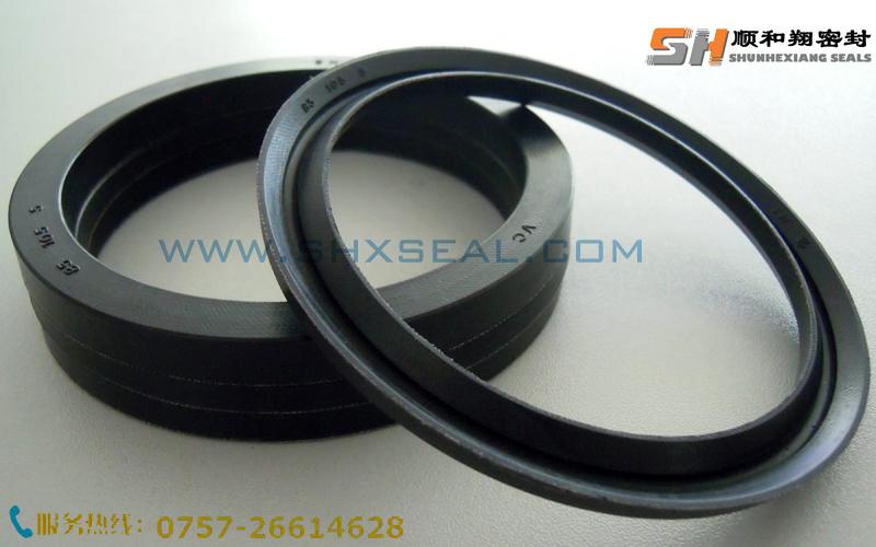 V形密封圈是截面为V形密封件,用途十分广泛,既可作活塞密封或活塞杆密封。通常为1+3+1或1+5+1组合结构使用,分别由压环A、密封环B、支承环C组成。适用于高低水压、油压机械设备,特别适用高压力、大直径、高速度、长冲程等苛刻工况条件。是密封件制品中比较牢固的一种V型密封圈,能在恶劣的情况下正常工作,与其他使用寿命也比较长,可以进行最佳的自由组合以适应高度和各种用途,即使在表面质量很差的情况下也可以工作,适用于压力快速变化的场合。