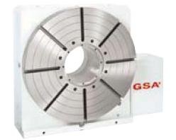 由铝镍、青铜精度等级为5级的双导程蜗轮与渗碳淬硬后精度等级为5级的蜗杆、高刚性精密级径轴向轴承、采多片式碟式刹车锁紧机构等组装成的第四轴旋转工作台,具有精密、刚性好、耐磨保持性高、2年内不用调间隙等特点,适用高速、重切削加工。