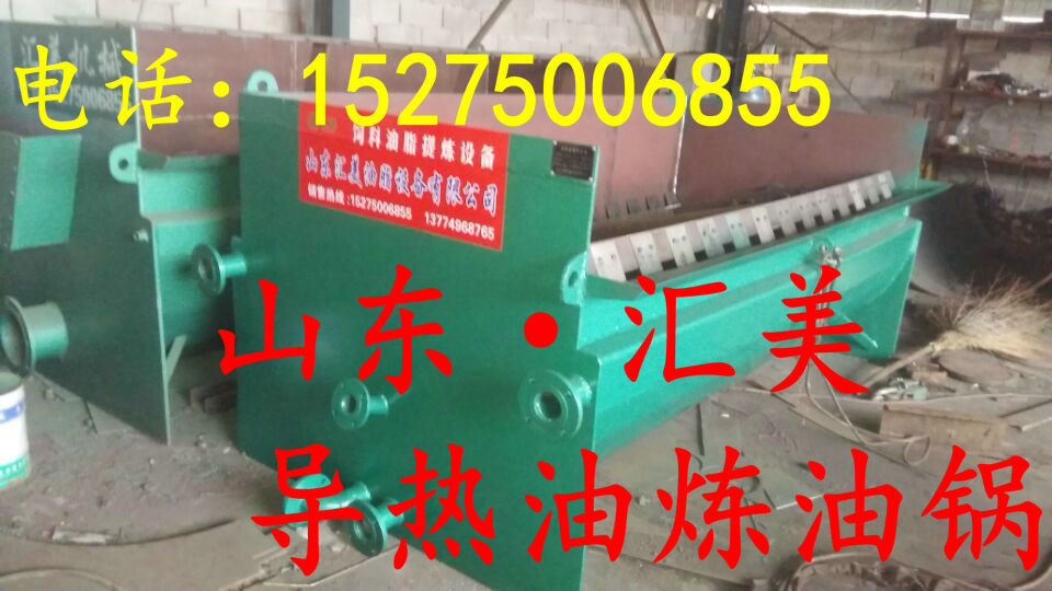此设备是在老式炼油的技术上经过实践改进研制而成!(此设备中间装有减速机链条带动刮刀、达到了不糊锅有质量好的效果,节省了像老式炼油时有人不停的搅拌) 新式炼油锅一般长1.5--2.8米、宽0.95--1.5米、高0.75--1.5米、每次可炼制一吨半---三吨左右{可根据客户要求定制大小},长分为两部分一部分带搅拌、另一部分可将炼好的油放入油池内、也可加以齿轮泵直接打入油罐内、此炼油锅每天加工量在5---15吨。本公司还生产导热油炼油锅、此锅经过导热油炉加热、此锅成本高、要安装导热油炉适应大型动物油加工厂。