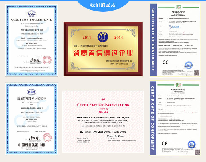 万能打印机是从中国总代理的爱普生北京分公司购买的,全球80%的厂家都用爱普生的打印机,她的主要受欢迎的就是性能稳定,色彩明亮,操作简单打印机的底座是根据打印机来设计的,目的就是扩大打印面积,发扬图像逼真的效果。(宽度:10、 14、16、18cm,有效高为5个毫米)
