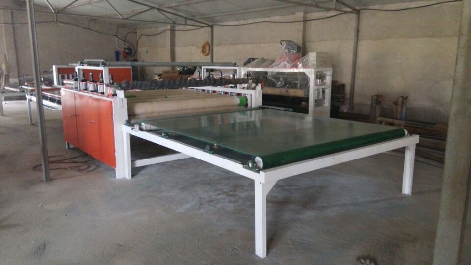 采用全自动电脑程控,自动完成涂胶,加热贴面.烘干.两次冷压,三次热压于一体,靠链条、链轮传送,结构紧凑合理,操作方便,速度可调。适用于防火板的表面贴面,还能将各种木质板(三合板、石膏板、密度板、刨花板)进行深加工贴面.如木纹纸、PVC波音、铝箔、免漆纸、高分子膜等.可生产各种花色的豪华装饰板.利润倍增,适合家具厂、人造板厂、乡镇企业和个体户接产.设备分为大中小多种型号,还可根据客户要求加工定做。