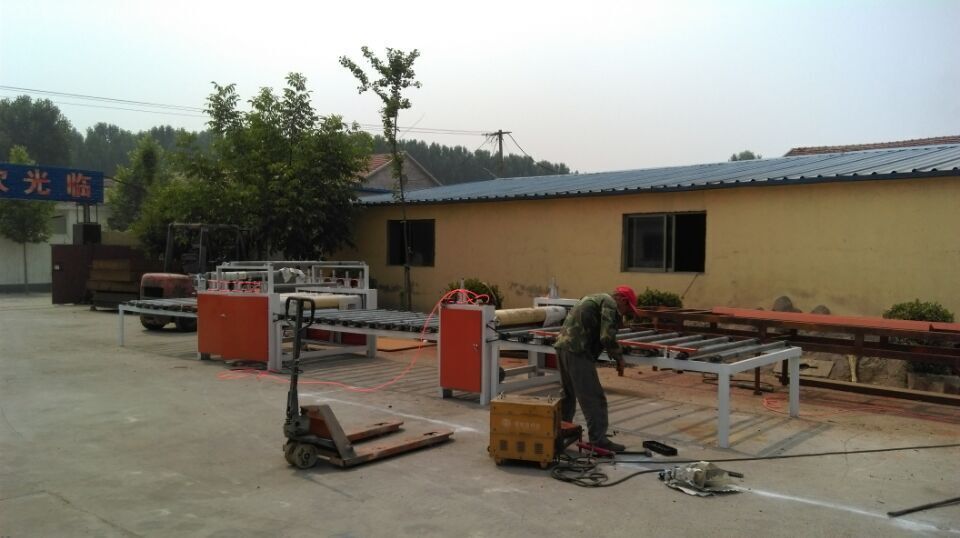 采用全自动电脑程控,自动完成涂胶,加热贴面.烘干.两次冷压,三次热压于一体,靠链条、链轮传送,结构紧凑合理,操作方便,速度可调。适用于防火板的表面贴面,还能将各种木质板(三合板、石膏板、密度板、刨花板)进行深加工贴面.如木纹纸、PVC波音、铝箔、免漆纸、高分子膜等.可生产各种花色的豪华装饰板.利润倍增,适合家具厂、人造板厂、乡镇企业和个体户接产.设备分为大中小多种型号,还可根据客户要求加工定做