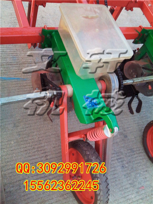 各行传动轴连成一体,统一驱动,转速一至,传动动力大,即使其中一行的地轮偶然打滑,也不影响该行正常播种。