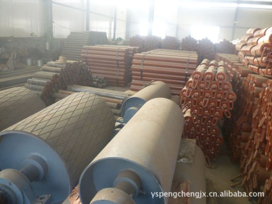 改向滚筒用于改变输送带的运行方向或压紧输送带使其增大与传动滚筒的包角,改向滚筒主要在皮带运动的下方,如皮带运送方向为左,那么改向滚筒在皮带机的右侧,主要结构为轴承和钢筒,传动滚筒是皮带机的主动轮,从两者之间的关系来说就好比自行车两个车轮,后轮就是传动滚筒,前轮是改向滚筒;改向滚筒也叫导向滚筒,他和传动滚筒在结构上是没有区别的都是由主轴滚筒轴承及轴承室组成传动辊筒分主传动和从动两种。