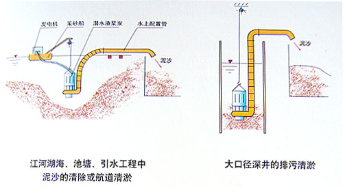 1、 整机为干式电机下泵式结构。电机采用机械密封保护,能有效地防止高压水和杂质进入电机内腔。 2、 除主叶轮外,还设有搅拌叶轮,能将沉淀于水底的淤渣搅拌成湍流后抽取出来。