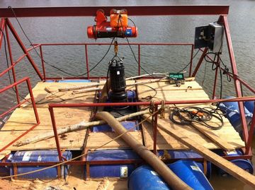 ZSQ(R)型潜水泥水泵 金沙泵 挖沙泵 浓浆泵是电机与水泵同轴潜入水中工作的,该泵过流部件采用高合金耐磨材料制造,具有较好的耐磨性,过流通道大,适用于输送含有较大固体颗粒的泥沙、矿浆、煤浆、砂石等介质.