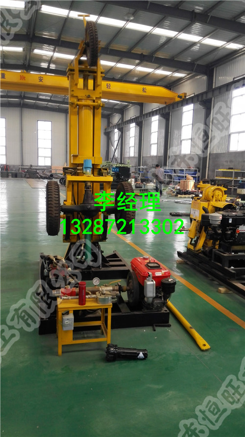 轮式气动水井钻机机 HQZ200型自行式气动钻井机 HQZ系列水井钻机是一种轻型、高效、多功能的钻凿孔设备,它主要适用于钻凿水井、农业灌溉井、地热空调孔及其他用途的井孔,尤其适用于山区和岩石地层的取水工程。该钻机可在不同地层上进行穿凿工作,钻孔直径可达254mm。