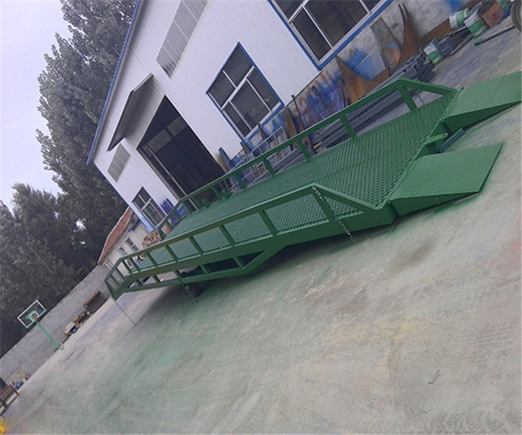移动式登车桥是与叉车配合使用的货物装卸辅助设备,可根据汽车车厢的高低调节高度,叉车可以直接通过本设备驶入车厢内部进行货物的批量装卸,仅需单人作业,即可实现货物的快速装卸。它使企业减少大量劳力,提高工作效率,获取更大经济效益。