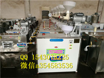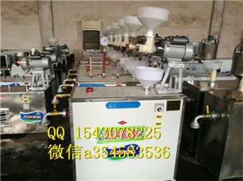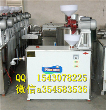 天阳碴条机(玉米面条机) 一机多用, 设计合理,操作简单,可以生产馇条、米线、粉条、粉丝等,产品表面光泽,筋性好,耐煮不断条。碴条加工效益分析: 1、设备投资:磨浆熟化一体机4800元,连电机总计5700元(不含运费)。 2、生产成本:(以生产500克包装的碴条计算)玉米馇2.2元/斤,可生产鲜碴条2.5斤,水电费0.1元,人工工资0.2元/斤,其他费用0.02元/斤。 3.利润:目前500克袋装碴面条在超市可卖到3.2元左右,批发价格在2.5元,则每斤利润是2.5元-(2.2元/2.5+0.1+0.2+0.02)=1.3元/斤左右,每天生产400斤,可赢利500元左右。 自购馇条机可在城乡农贸市场租摊位现做现卖,也可经营特色粗粮小吃店,其效益十分可观。售后服务:1、购馇条机免费培训机器操作维修保养技术,提供各种杂粮面食生产工艺配方。2、两年内馇条机出现质量问题,保修包换。