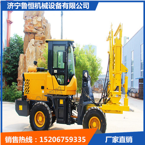 恒旺牌护栏打桩机 配置的是490四缸发动机 20装载机 钻孔深度1.5(m)左右 钻孔直径300(mm)左右 如果您要钻孔那就需要配 冲击器 钻头 钻杆 空压机。