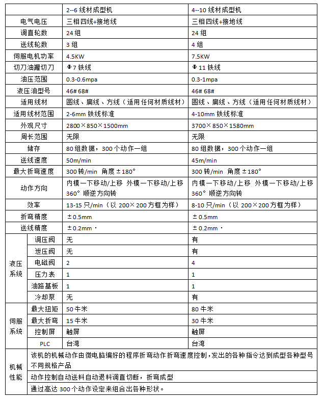 (1)外形结构布置:二维线材成型机专业用于圆线、扁线、包胶线等线材的框型、星型以及其他各类不规则形状的成型设计,液压站和电器箱与机身一体化安装,操作台延伸到机身外部,便于操作位置安装。方便运输、操作和维护。