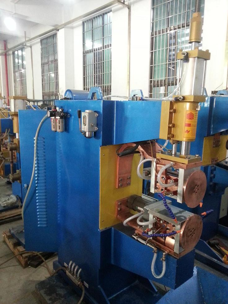 2. 一台机器可以同时具备横缝焊接和纵缝焊接两种功能,只要将转换一下上电极轮的方向和更换一下下电极臂,就可以在几分钟内完成两种焊接方式的切换。