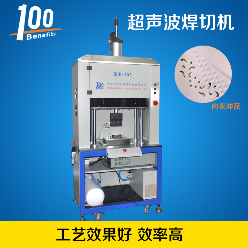 大型超声波焊切机通过加压和超声波工艺使不同类型的布料进行熔接,再通过模具进行冲切。可以根据客户的不同需要可做出不同种类的产品工艺。