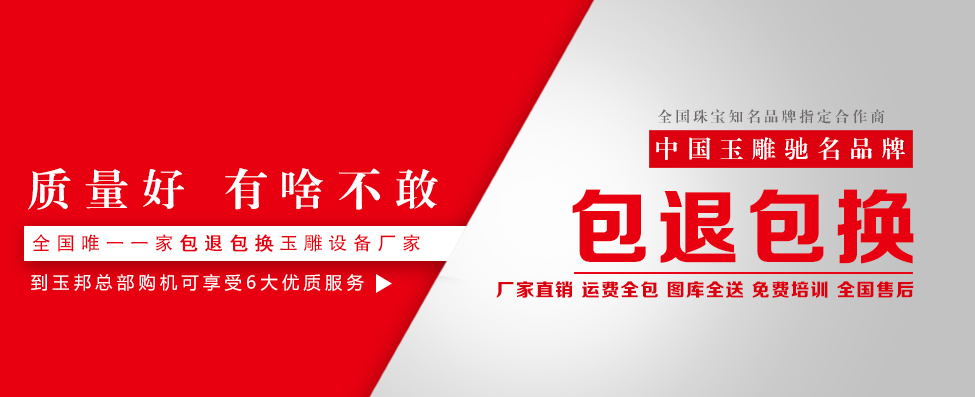 自成立起以来,我们一直以客户的满意为我们的服务宗旨。同时在不断的提高玉邦牌玉雕设备的精确度、稳定性以及方便快捷的售后服务等,从而做到最大的满足客户需求。这也是玉邦一直以来所要追求的目标。