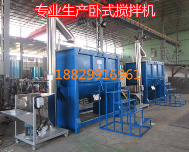 化工粉末卧式搅拌机详细说明: 1、该机为卧式筒体,内外三层螺旋带具有独特的结构,运转平稳、质量可靠、噪音低,使用寿命长,安装维修方便,并有多种搅拌器结构,用途广泛的多功能混合设备; 2、混合速度快,混合均匀度高,特别是粘性,螺旋带上可以安装刮板,更适应稠状、糊状的混合; 3、在不同物料的混合要求下(特殊物料必须每次混合后需清洗),采用不同螺旋带结构,可加热、干燥的夹套型; 4、可根据客户需求量身定做。 5、卧式机体也可以设有活动门,以便供用户清洗。 6 实行可靠的售后服务,让客户买的放心,用的舒心。