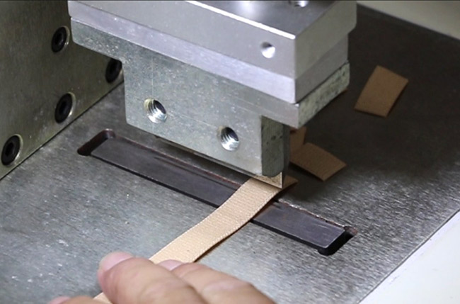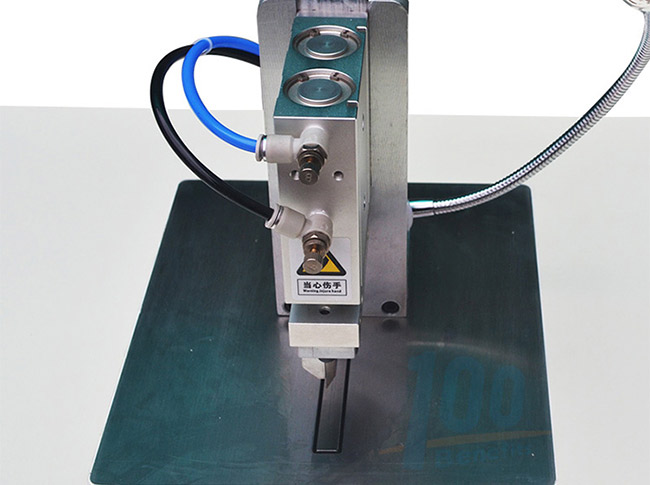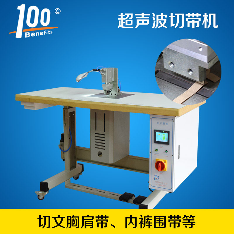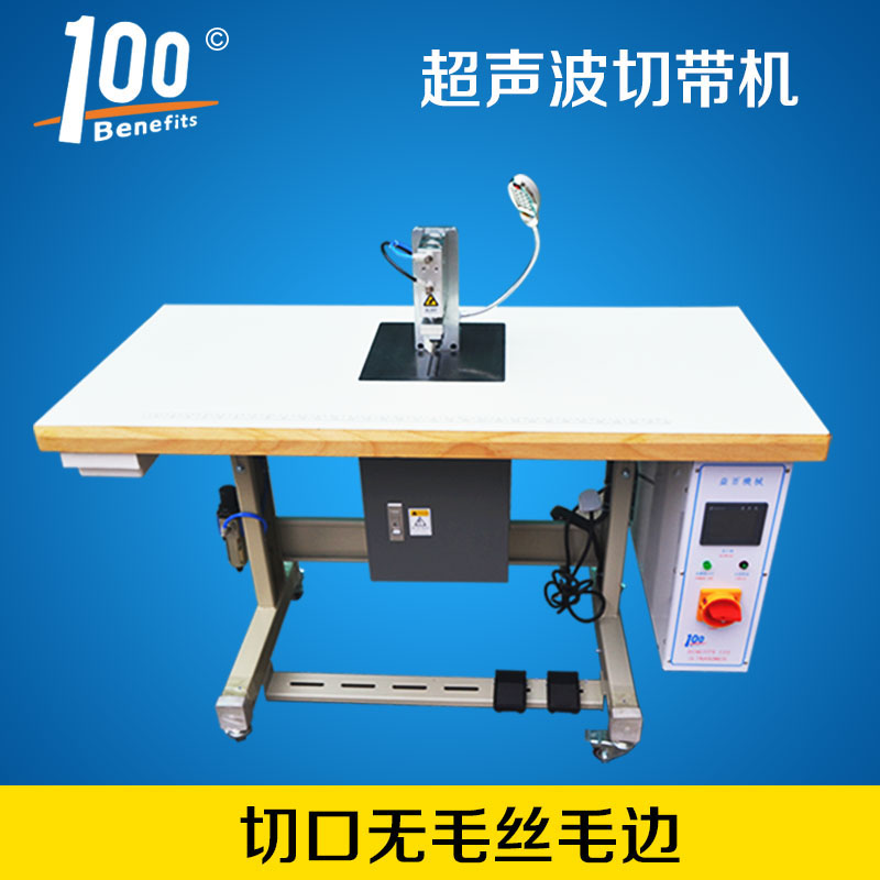 超声波切带机利用超声波高频振动摩擦的原理,在刀口与焊头充分接触的同时使用超声波发振来切断布料,有效的防止了用剪刀剪切出来有毛丝等现象,且高效、快捷、简便,可长时间运行。