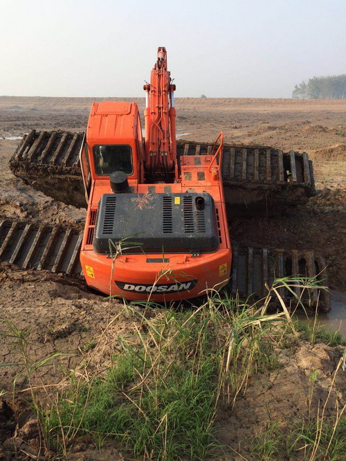 我们顺应市场发展的需求成功将旱路挖掘机改装为水陆两用挖掘机,改装后的挖掘机可在八十厘米以上的水上作业,可担任水库、鱼塘、及城镇建设中的河道清淤和水域治理、湿地沼泽及江、河、湖、海、滩涂的资源开发和环境整治等,在试运行过程中,挖机稳定的工作性能,与改装后底盘相得益彰,不仅能在松软的淤泥中行动自如,还可以直接渡水运输。水陆两用挖机给客户带来了高于普通陆用履带式挖机一倍的经济效益,赢得了用户的极大赞誉。