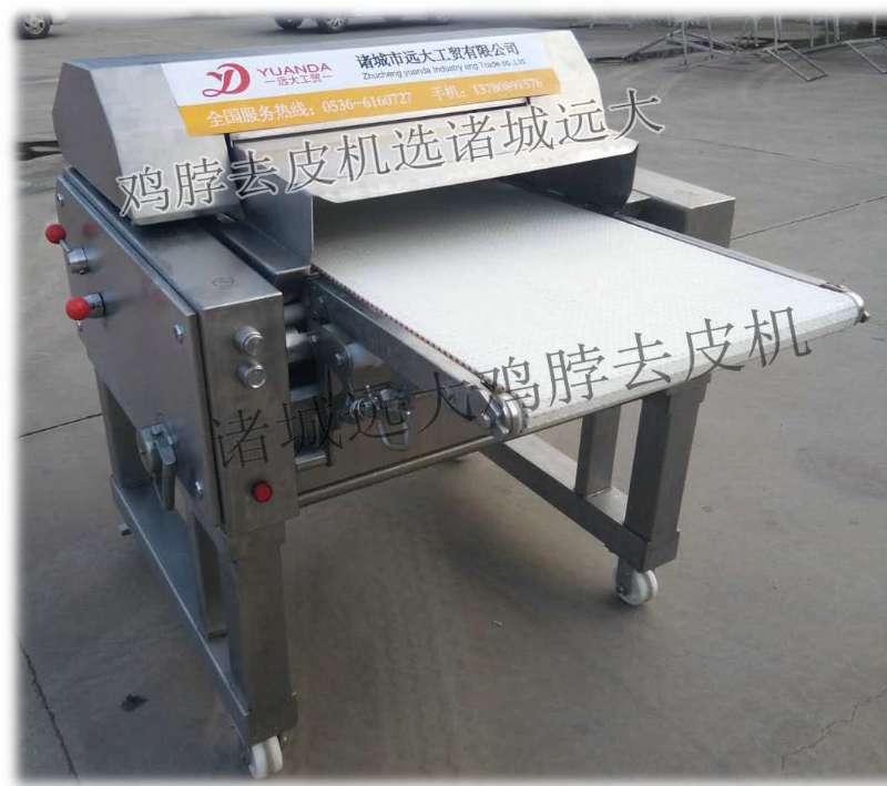 自动剥鸡脖子皮的机器,涉及一种肉禽加工机械,该机器两侧各设一组机架实用新型自动剥鸡脖子皮的机器结构简单,利用减速机可迅速剥去鸡脖子上的皮,实现了高效率、机械化处理鸡脖子皮的技术、经济价值。