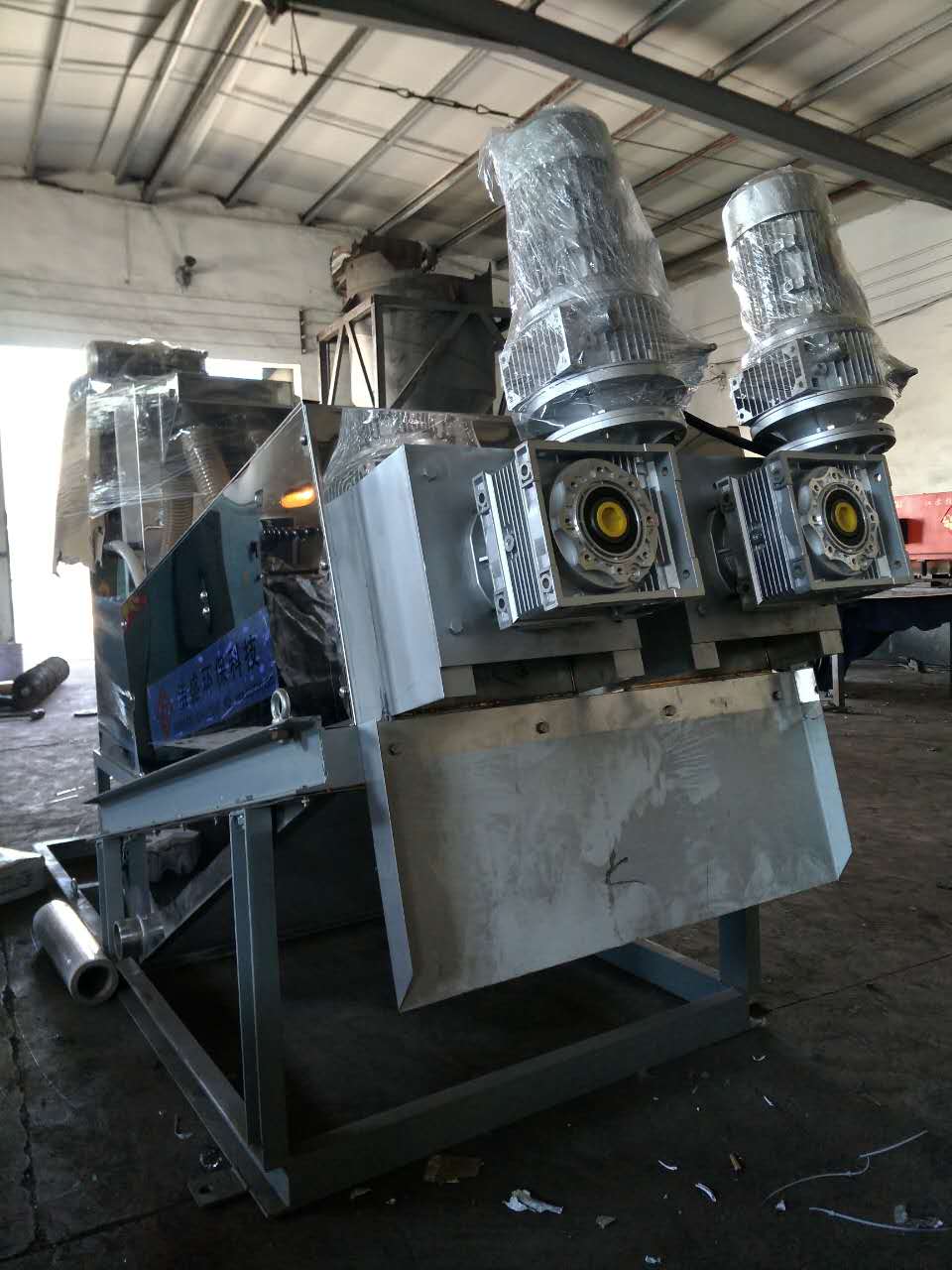 1.脱水机的主体是由固定环和游动环相互层叠,螺旋轴贯穿其中形成的过滤装置。前段为浓缩部,后段为脱水部。