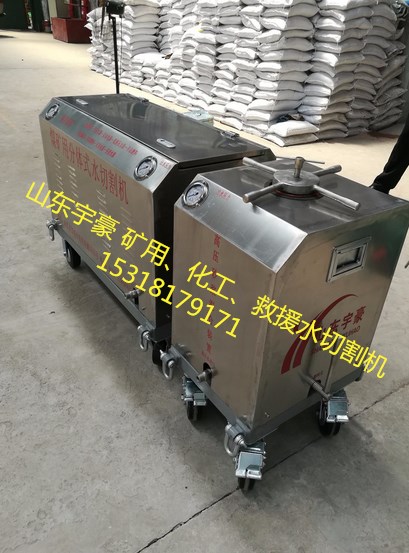 性能特点:体积小、重量轻,便携;结构简单紧凑,操作简单;防爆电机动力(EXd Ⅱ CT4),满足作业要求;低噪音,无环境污染;工作压力低,系统维护简便。相比传统检修作业生产具有无明火、无高温、无静电优势,产品工作压力远低于国际认同的压力安全阀值,特别适用于煤矿、是有、化工、救援、排爆等领域。普通工人经过简易培训后即可使用。水切割机配合公司研发的各种工装,如:锚杆切断器、法兰螺丝切断器、圆钢切断器、钢板切割器有效加快切割速度,快速完成切割。