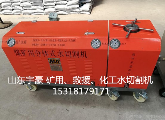 简介:煤矿用水切割机QSM-4.5-15-BG水切割机是山东宇豪工贸有限公司自主研发的新型、便携的前混式磨料水射流切割设备,属于冷切割范畴,应用于煤矿井下便携式水切割机,石油化工油领域中的切割作业。水切割机通过火花实验、静电检测及温度检测,满足防爆要求。