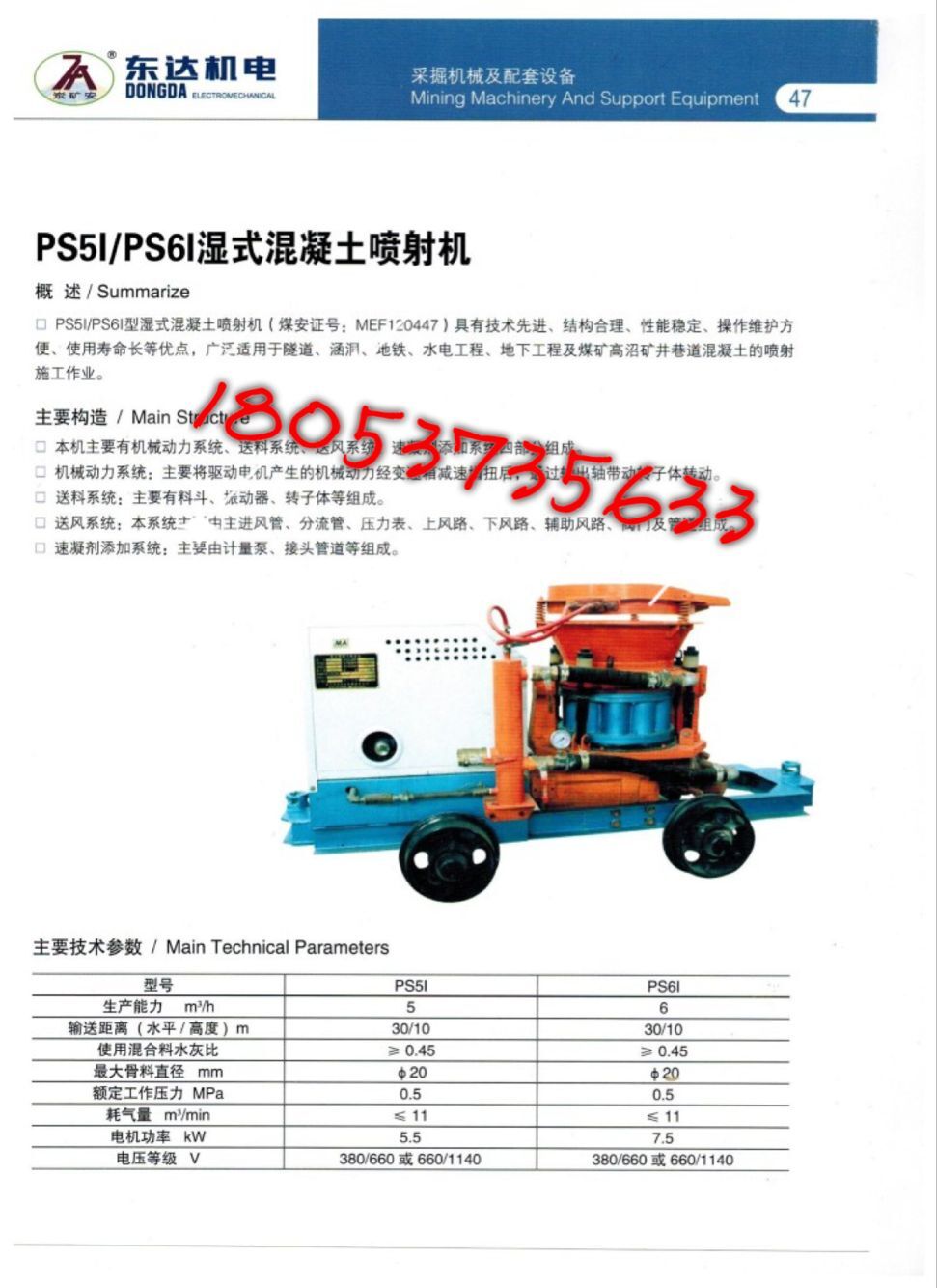 混凝土喷射机产品介绍PS5I/PS6I型湿式混凝土喷射机(煤安证号:MEF120447)具有技术先进、结构合理、性能稳定、操作维护方便、使用寿命长等优点,广泛适用于隧道、涵洞、地铁、水电工程、地下工程及煤矿高沼矿井巷道混凝土的喷射施工作业。