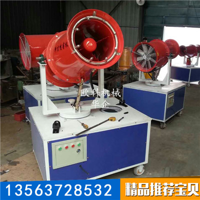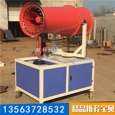 2、小型雾炮机喷出的雾粒细小,与粉尘接触时,形成一种潮湿雾状体,能快速将粉尘抑制