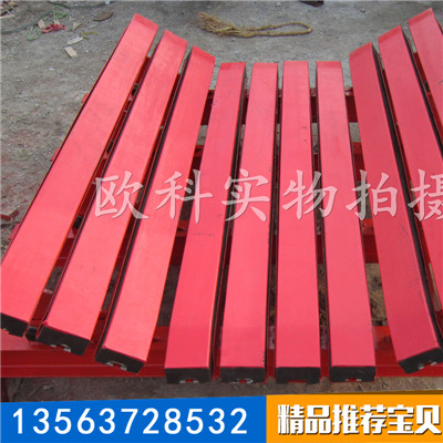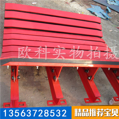 1、皮带机缓冲条与输送带实现了面接触,有效防止了对输送带的损伤,延长了皮带的使用寿命。