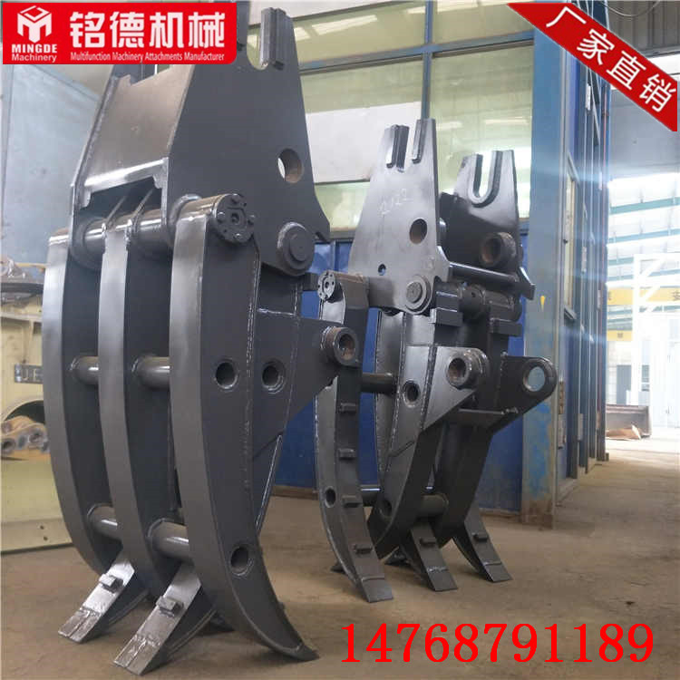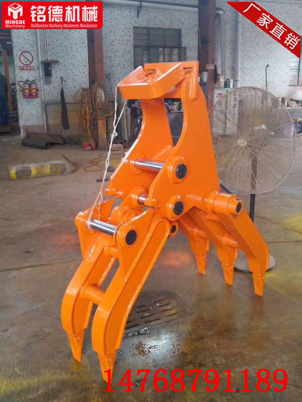 铭德(1)机械式挖掘机抓木器:采用挖掘机铲斗油缸推动,不用另外添加液压块及管路; |
