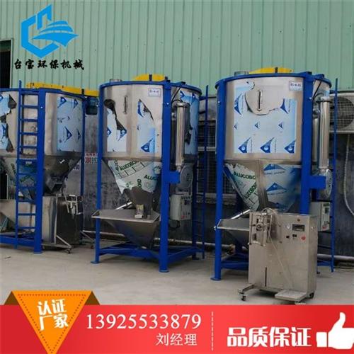 立式搅拌机的工作是螺杆的快速旋转将原料从桶体底部由中心提升至顶端,再以伞状飞抛散落,回至底部,这样原料在桶内上下翻滚搅拌,短时间内即可将大量原料均匀的混合完毕。常用于塑料片料、粉碎料、塑料粒料、塑料新旧料及添加色母搅拌均化、肥料生产和饲料加工等用途。