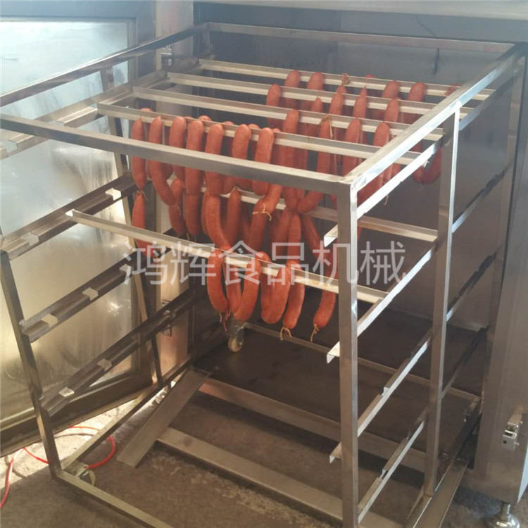 香肠是一种利用非常古老的食物生产和肉食保存技术的食物,将动物的肉绞碎成条状,再灌入肠衣制成的长圆柱体管状食品。中国的香肠有着悠久的历史,香肠的类型也有很多,主要分为川味儿香肠和广味儿香肠。(18653655908)火腿肠烟熏机 大型烤香肠机器 腊肠烘干炉