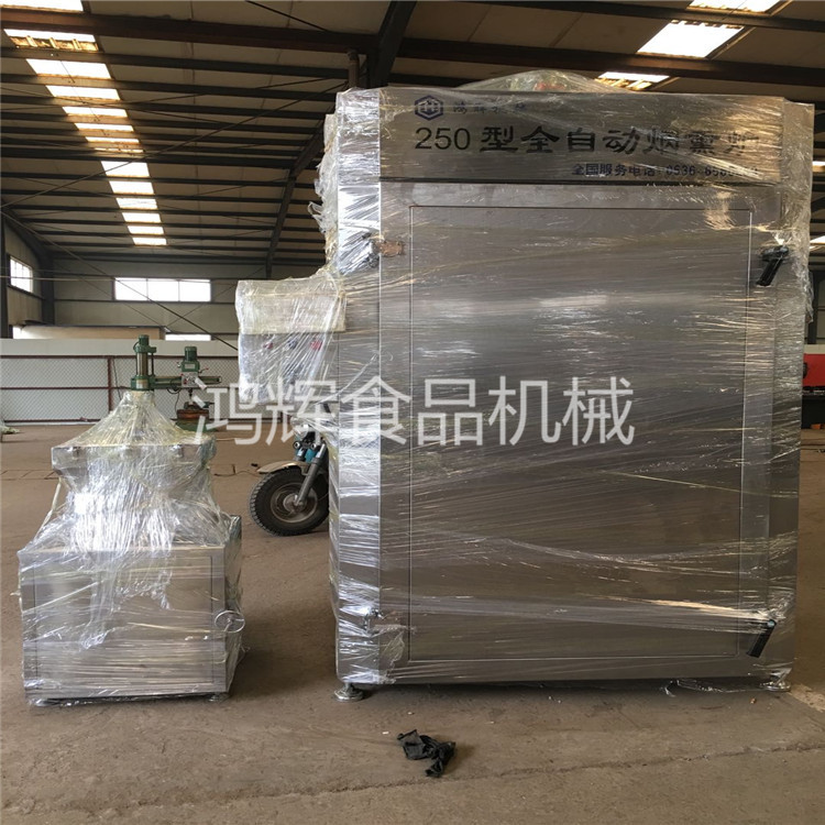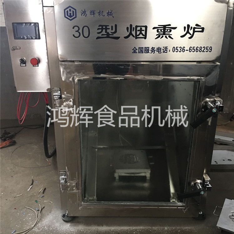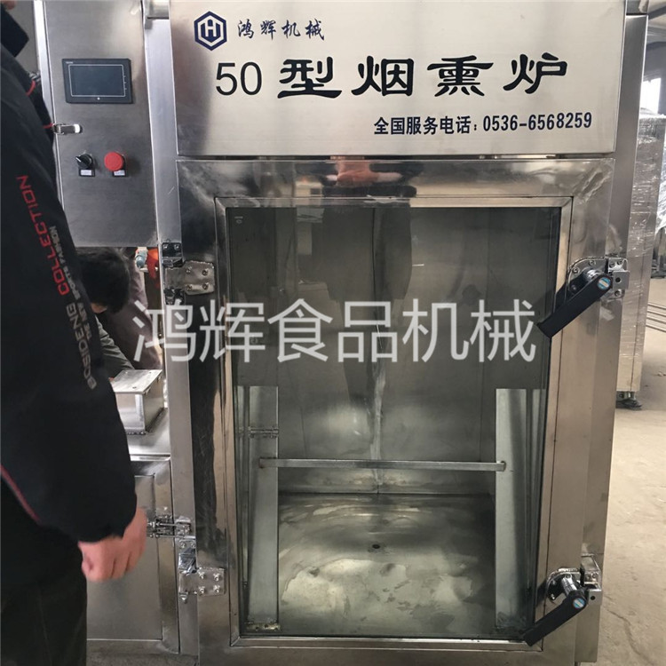 1.烟熏炉又被成为熏蒸炉,熏蒸箱,烘烤炉和烘干机,从字面上不难看出该机器具有烟熏蒸煮烘干上色四种功能,可以加工的产品广泛如香肠、腊肠、腊肉、腊鱼、烧鸡、烤鸭、猪头肉以及豆干等等。产品内外炉体全部采用优质不锈钢制造,炉体洁净,光泽照人,保证了肉制品无污染,完全符合食品卫生法的要求,是肉类制品生产厂家必备设备。该产品填补了没有锅炉不能使用蒸薰炉的空白,具有烘烤、蒸煮、烟熏等多种功能,并且耗电量低,其成本仅为烧煤的60%。使用电动蒸薰炉不但能提高产品质量,保证卫生,同时也能降低产品成本,是现场制作肉类食品的好帮手。它可以配上小型拌馅机、小型灌肠机在市内各大型超市、各大中型市场中搞现场制作。同时也可用于大中小型食品加工厂。火腿肠烟熏机 大型烤香肠机器 腊肠烘干炉(18653655908)