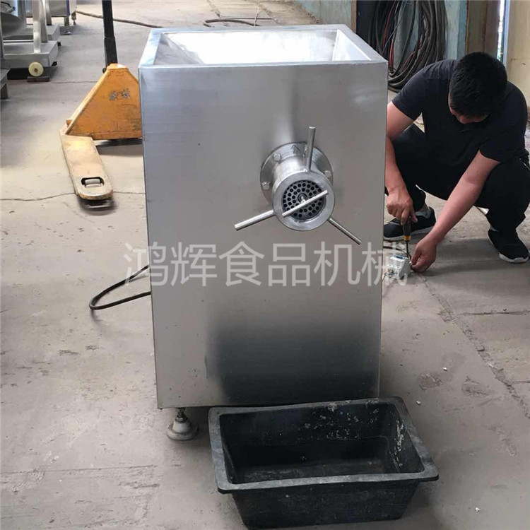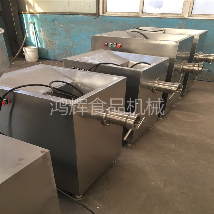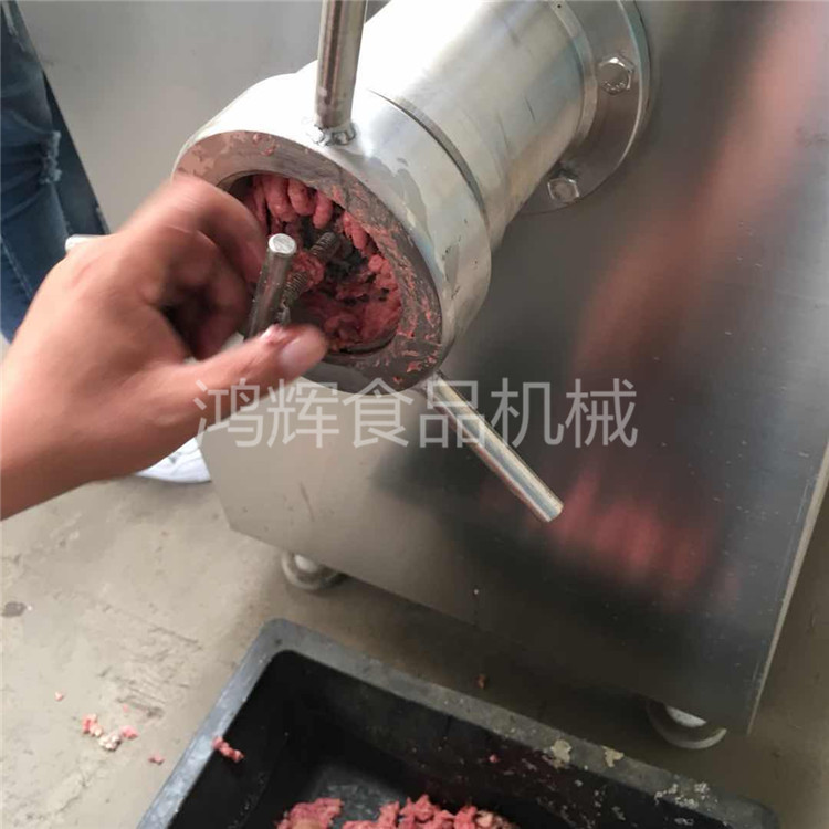 绞肉机为系列产品:工作时利用转动的切刀刃和孔板上孔眼刃形成的剪切作用将原料肉切碎,并在螺杆挤压力的作用下,将原料不断排出机外。可根据物料性质和加工要求的不同,配置相应的刀具和孔板,即可加工出不同尺寸的颗粒,以满足下道工序的工艺要求。联系18653655908.
