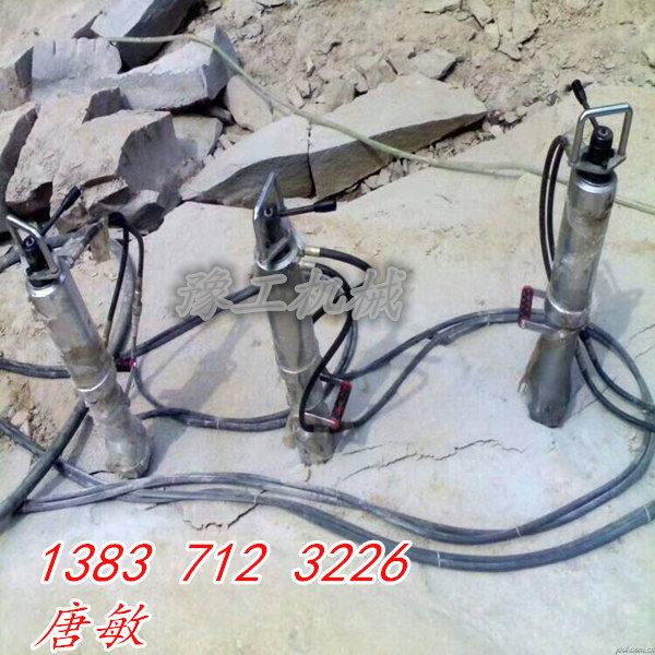 液压劈裂机的原理是采用电动机带动超高压动力站,产生的高压液压油通过油管把动力传输到液压劈裂枪,液压劈裂枪可以通过我们的控制阀来控制伸缩,产生涨裂的目的。