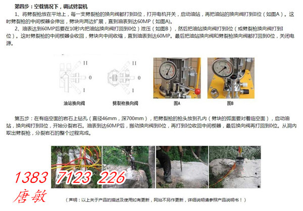 我豫工劈裂机具有安全性。(机利用液压油不可压缩及可流动性的物理特性,加以静态推力,实现静态可控性的工作)环保性:在施工的过程中不会产生震动、冲击、噪音、灰尘飞屑等,即使在人口稠密地区或室内,城市建设中也不会受到影响。