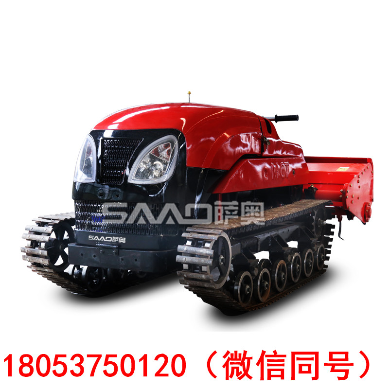 萨奥系列遥控履带自走式旋耕机是为了适应果园、大棚等种植理作业而开发的动力机械,它操作方便,牵引力大,爬坡能力强,通过性好。产品出厂标准配套机具为旋耕机,其它如:回填机、开沟机、打草机、喷雾打药机、施肥机等,用户可根据需要自主选购。
