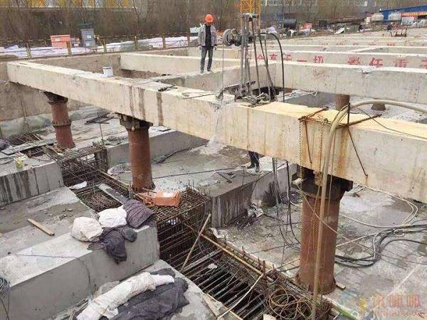 (2)先拆连系梁、后拆主梁,跟进拆除围檩,最后采用人工破除节点;