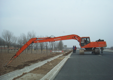 我公司长期面向全国租赁加长臂挖掘机,主要从事河道清淤开挖,港口、码头、航道深水施工,高速、路边破边沟一次性修整,楼房基层深挖,水库、池塘清理等,尤其水路两用。加长臂挖掘机广泛适用于水利工程、城镇建设中的河道清淤和水域治理,湿地、沼泽及江、河、湖、海、滩涂的资源开发和环境整治,是工程船舶及常规工程机械无法替代的施工机,面向全国提供18-24米加长臂挖掘机租赁及加长臂挖掘机出租服务,专业对外承揽特大型河道开挖整治及水塘清淤工程。可以进行深度15米一次到位的深水施工、城市及工厂管道深埋、修马道困难的建筑物基坑、大型桥梁桥墩基础、钢板围堰、预制沉井沉降等挖掘作业。