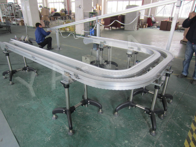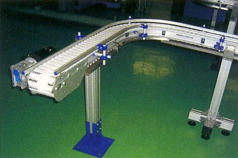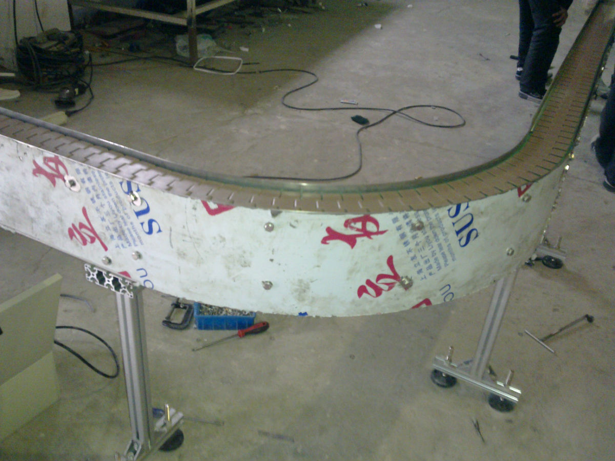 链板输送线是以大节距特种弯板链条为传送介质,带动金属/塑料面板作循环往复运行的一种输送装配设备。根据需要,该线体也可做成90度或180度转弯型的,用在空调链板输送机、根据产品的需要可选取不同宽度、不同形状的链板来完成平面输送、转弯、提升、下降等要求。设备结构简单,维护方便。