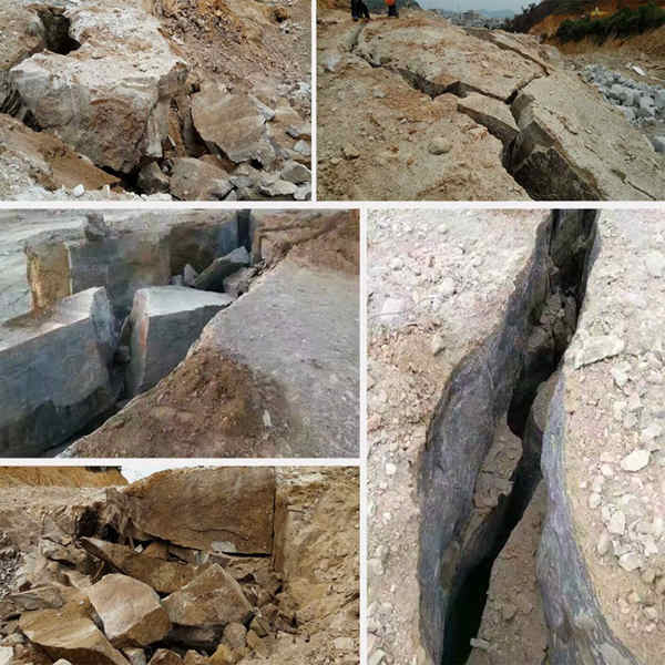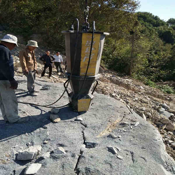 因为大型岩石劈裂机以挖机液压油为能源,岩石劈裂棒并奇妙地运用斜契原理,使劈裂头割裂力到达甚至上千吨割裂力,这样就能够在几秒钟时间内把上千吨的巨石垂手可得地劈裂开来,岩石劈裂棒从而使坚硬而巨大的岩石从山体中别离。
