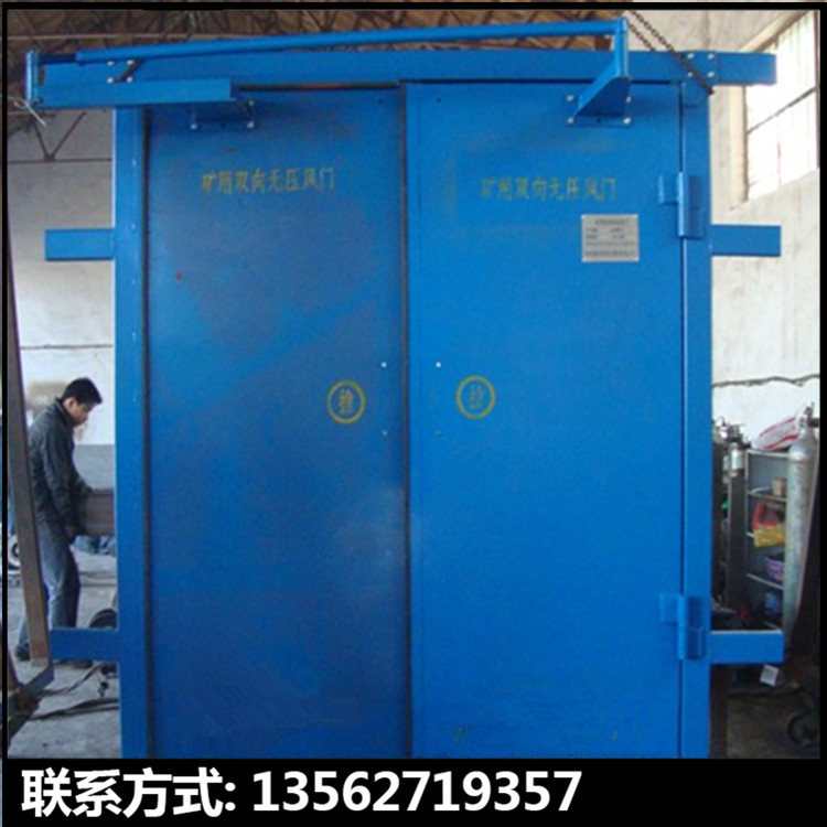 矿用无压风门主要用于矿山井下进回风巷和主要进回风巷之间每个联络巷中。双扇无压风门运用联杆平衡机构,开启力小,不需再设反向风门。