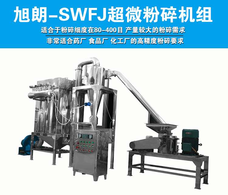 广州旭朗SZFJ系列粉碎机组按“GMP”标准设计,结构简单,操作清理方便,噪音小,产量高,机器全部用不锈钢材料制造,粉碎过程中无粉尘飞扬。